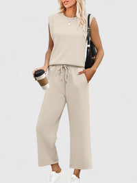• Chic Silhouette – Enjoy a stylish round neckline, cap sleeves, and relaxed wide-leg pants that flatter every figure.