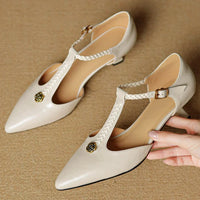 The Talvanna Leather Sandals combine pointed elegance with stable comfort in a classic T-strap design. With a sculpted kitten heel and braided leather strap, these shoes offer timeless charm with modern wearability, perfect for refined evenings or everyday style.